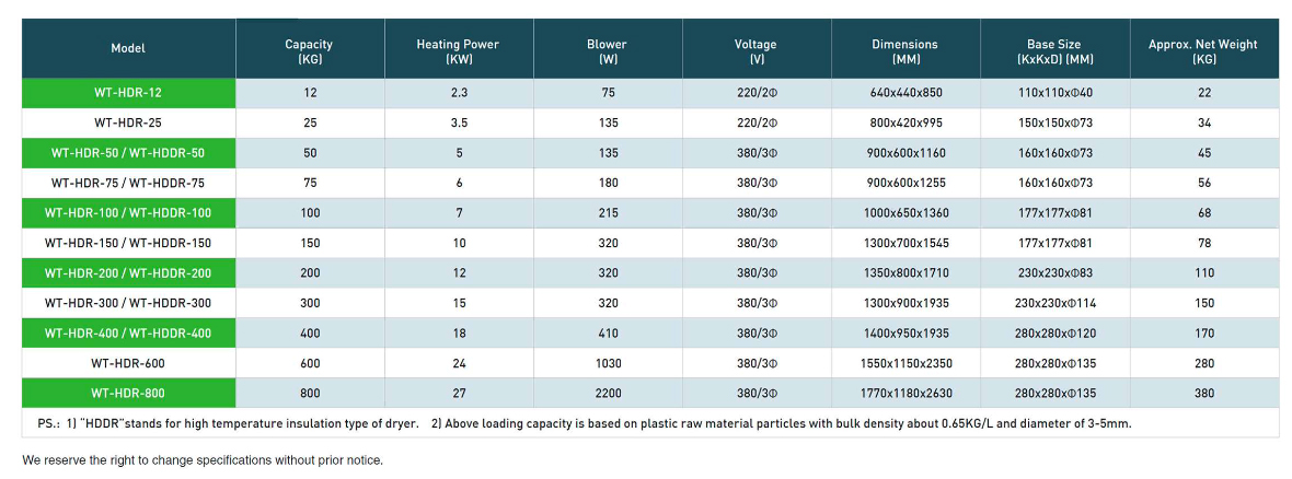 Hot air down-blowing design ensures even distribution of hot air to maintain a steady temperature in the hopper and increase dryingefficiency.