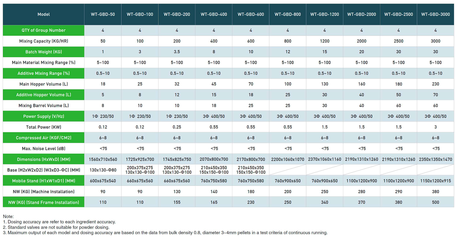 Equipped with two sets of volumetric screw dosing device for accuracy of material providing. • Low noise, high accuracy and high stability.