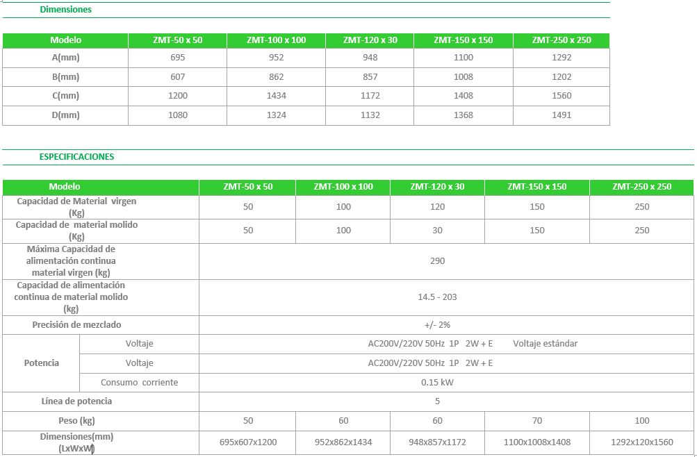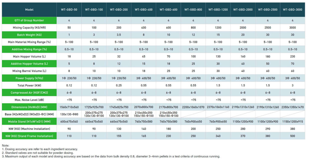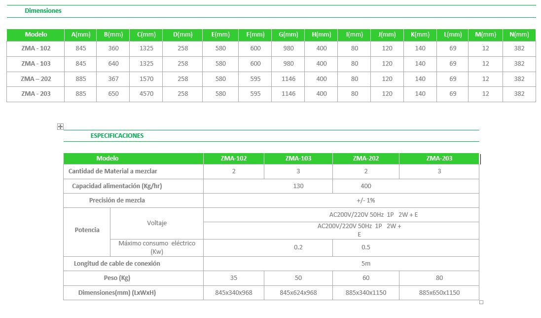 • Adecuado para mezclar masterbatch con todo tipo de materias primas plásticas materiales y mejor aún con materiales nuevos y triturados.