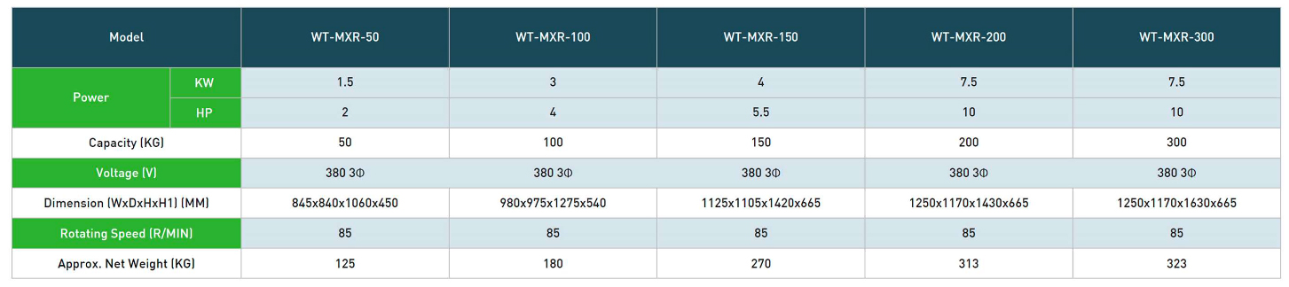 • Mezcla completa rápida, bajo consumo de energía y alto eficiencia.