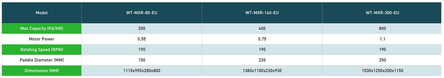 • Equipado con tornillo vertical, los materiales están siendo uniformemente turbolentados.